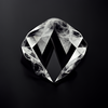 Logo noir stylisé avec un motif géométrique sur fond orange.